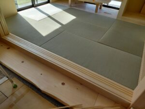 飼い犬が畳を破いてしまったとのことで薄い畳床だったので入替させていただきました。
